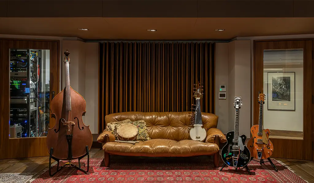 Jasmin boasts a vast collection of micro phones: the U87Ai, D-01, and KM184 sit along side vintage reissues like the U47 FET and U67, plus an original Telefunken U47, KU100 bin aural head, Schoeps, the Russian Soyuz, and a 1950s RCA ribbon microphone.
