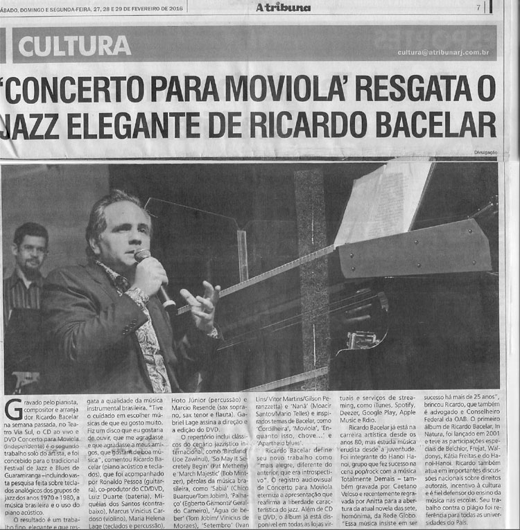 A Tribuna | ‘Concerto para Moviola’ resgata o jazz elegante de Ricardo Bacelar