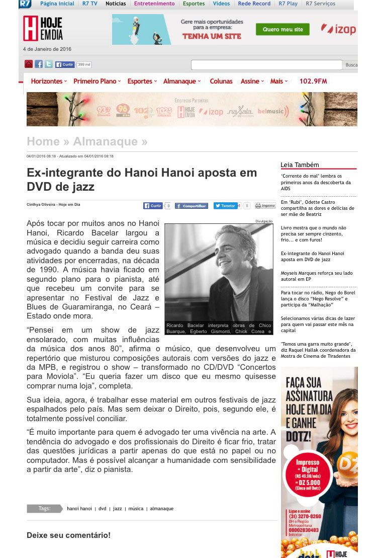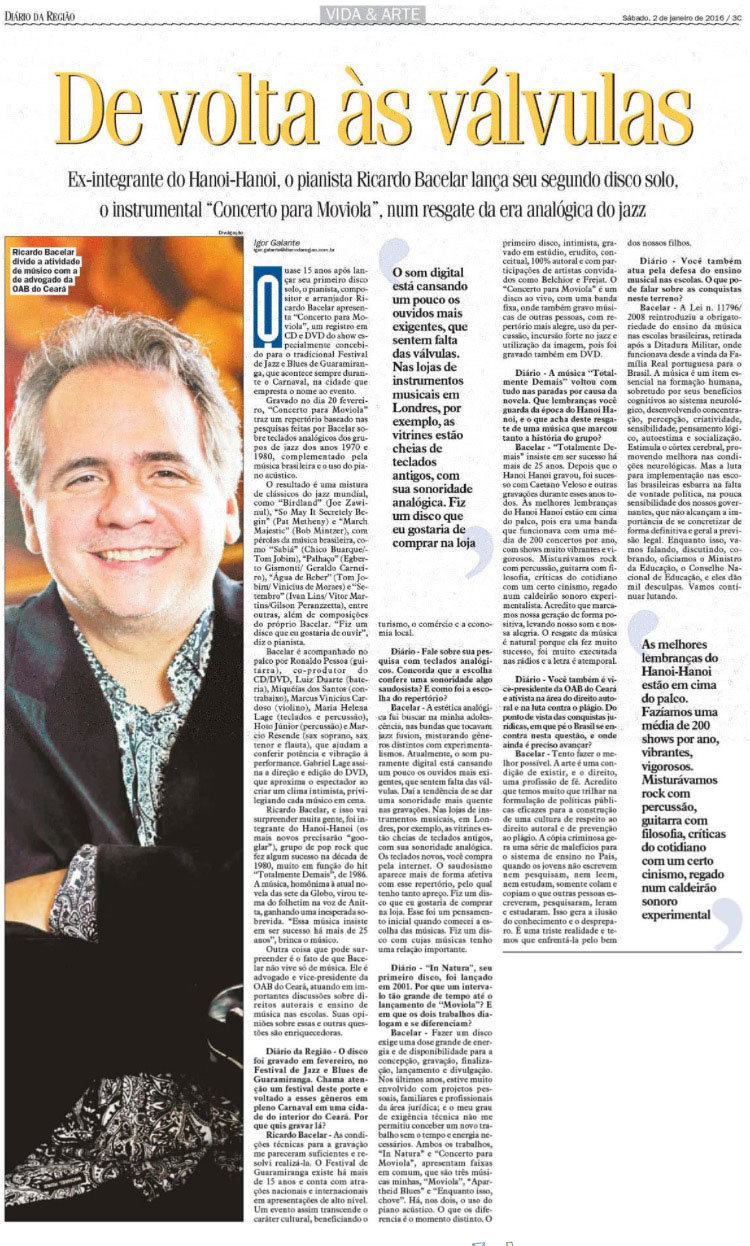 “Jazz pianist Ricardo Bacelar´s new release focuses on the roots of Brazilian music with its sprawling list of reinterpretations and originals such as the ethereal Nothing Will Be As It Was”…HillRag