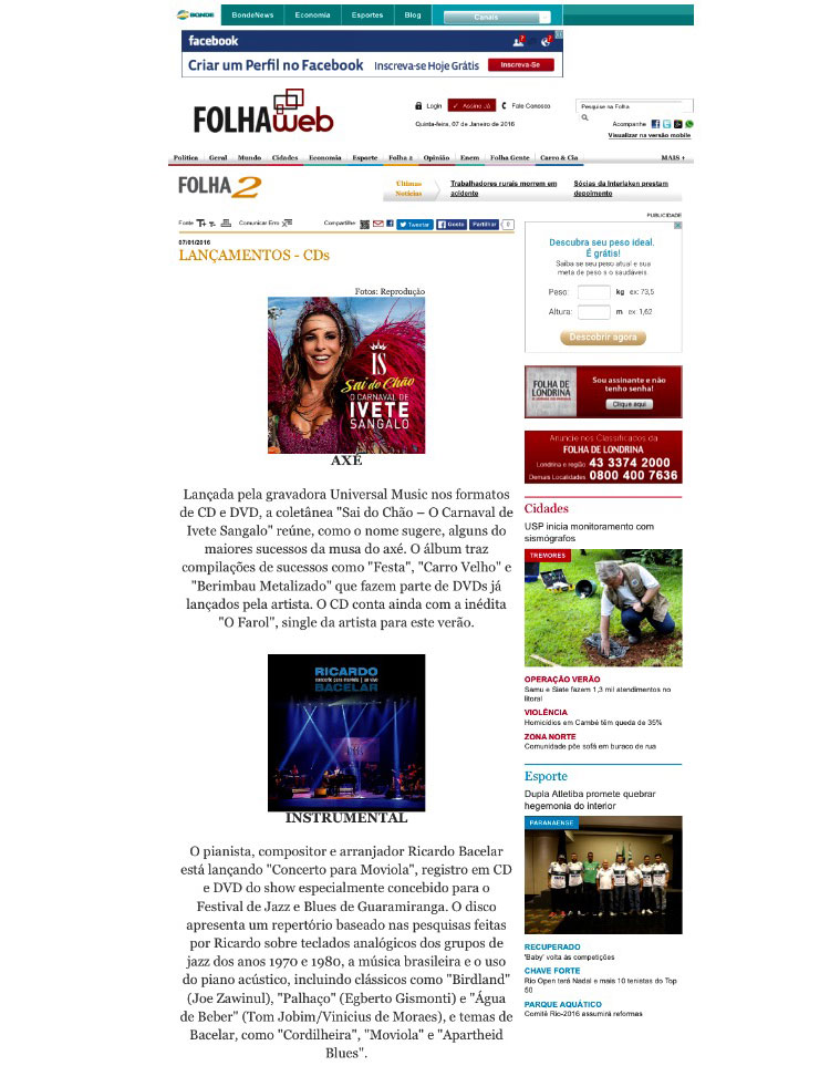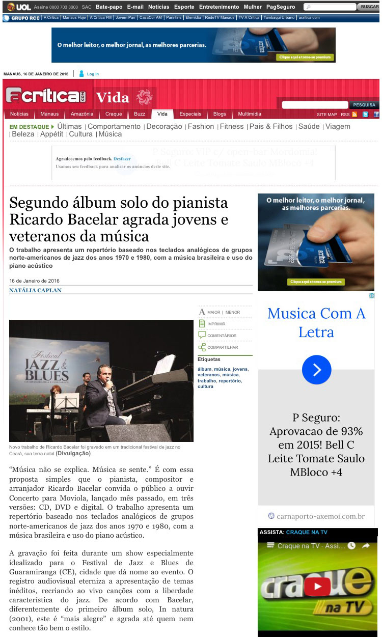 “Ricardo Bacelar has truly created something outstanding that captures the music of Brazil in all its glory”.Music News Today