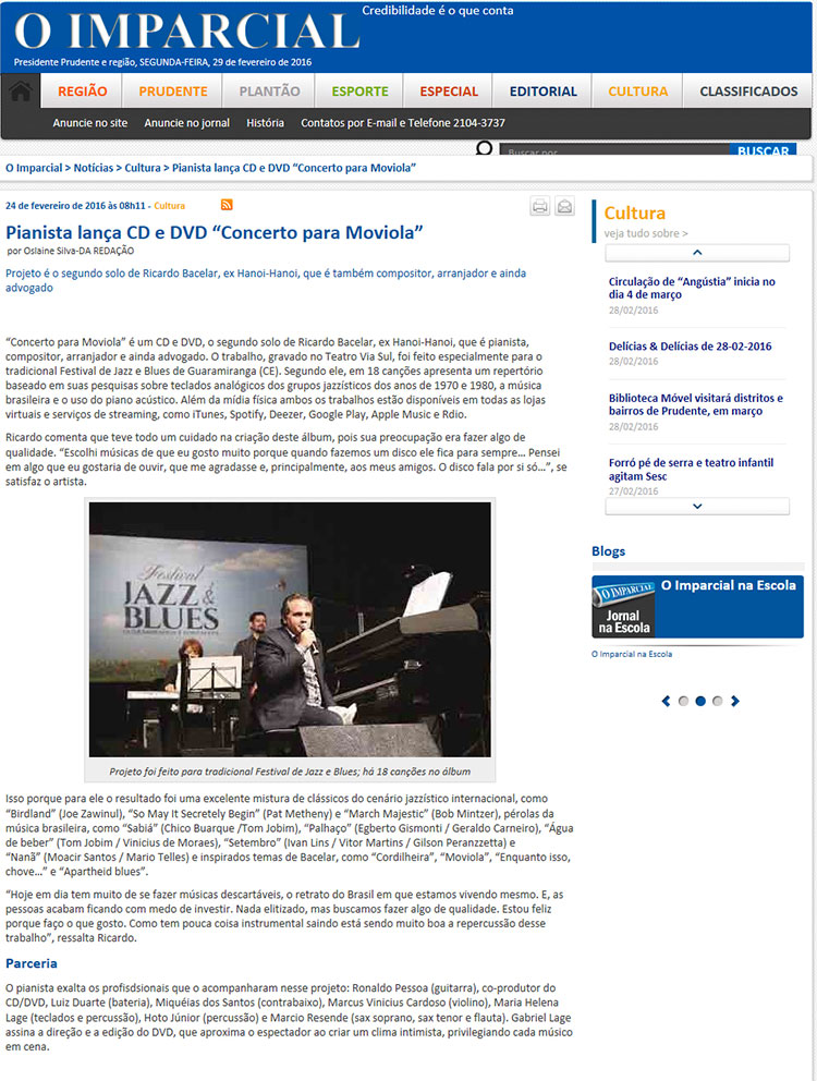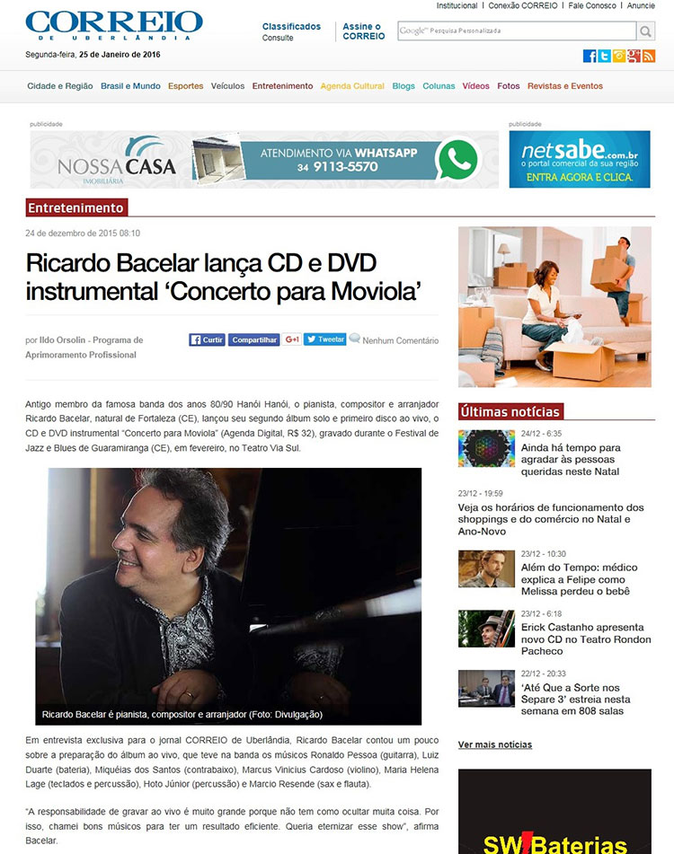 Correio de Uberlândia | Ricardo Bacelar lança CD e DVD instrumental “Concerto para Moviola”