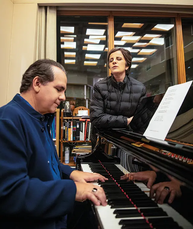 Nos palcos, apresenta-se em piano solo, com diferentes formações, com música cantada ou instrumental e com músicos convidados. Se apresentou com o maestro João Carlos Martins em piano a quatro mãos. Sua música expressa brasilidades, transitando em diversas matizes.